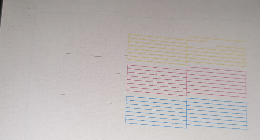 In der Hoffnung, wirklich (fast) alle Düsen frei zu bekommen, lasse ich den Drucker nun täglich ein paar Stunden stehen, drucke, mache einen Düsentest, lasse ihn wieder stehen, mache 1 bis 2 mal am Tag eine Düsenreinigung. Der Prozess dauert recht lang, jeder Durchlauf bringt derzeit jedoch 1-2 neue Düsen zurück ins Leben. Solange dieser Trend andauert, werde ich dieses Thema also entsprechend weiterverfolgen.
