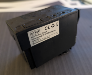 Also den Drucker geöffnet um die Patronen zu prüfen. Die Patronen besaßen alle auf der Seite ein Label der „All4Printing GmbH“ aus Essen. Eine kurze Recherche zeigt: Das ist ein bereits seit 2022 nicht mehr existierendes Unternehmen, was ein hohes Alter der Patrone nahelegt. Die Fertigungsqualität mancher Aftermarket-Patronen ist schlecht, jedoch möchte ich mir hier kein Urteil über das Produkt als solches erlauben. Sofort auffällig: Das Label der schwarzen Patrone war vollständig mit schwarzer Farbe gesättigt. Im Patronenhalter waren überall schwarze Farbreste. Außerdem: Das Lüftungsloch der Patrone war überklebt und damit nicht funktional. Der Aufkleber wurde daraufhin entfernt.